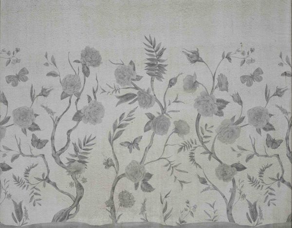 Un dessin doux et apaisant qui capture la tendresse des fleurs et des papillons dans des tons gris atténués, créant un sentiment de calme et de sérénité.