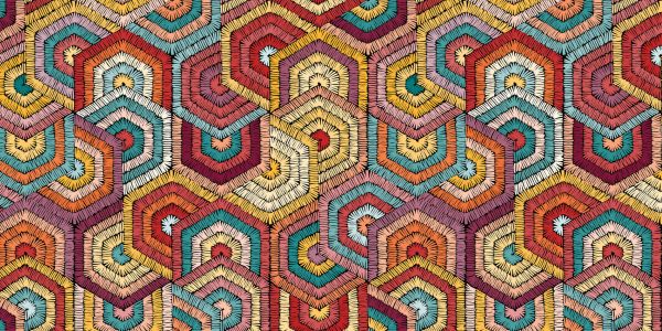 Motif brodé avec différentes couleurs. Combinez ce papier peint dans la chambre à coucher, par exemple.