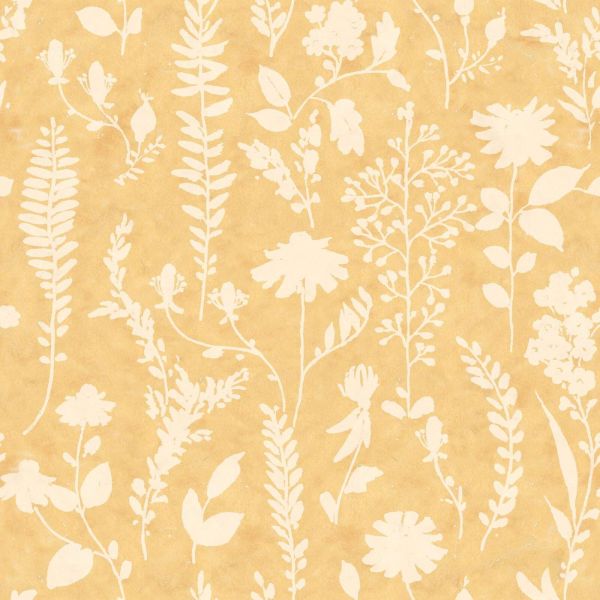 Motif estival de fleurs et de feuilles douces en couleur crème, représenté en silhouettes sur un fond jaune miel chaud. Le design dégage chaleur et élégance naturelle.