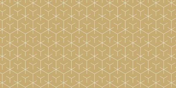 Papier peint doré avec un motif hexagonal avec des lignes blanches. Ces rayures donnent un effet abstrait.
