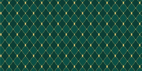 Papier peint vert avec un motif de losanges en deux tons de vert avec des lignes jaunes.