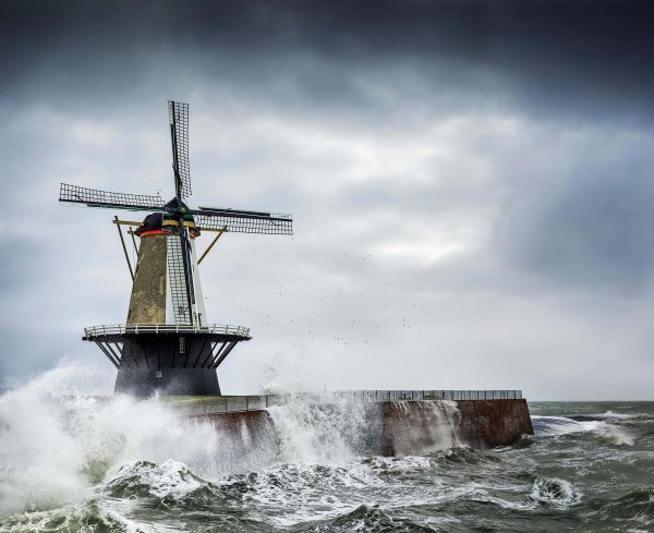 Papier Peint Panoramique Moulin avec des vagues de tempête