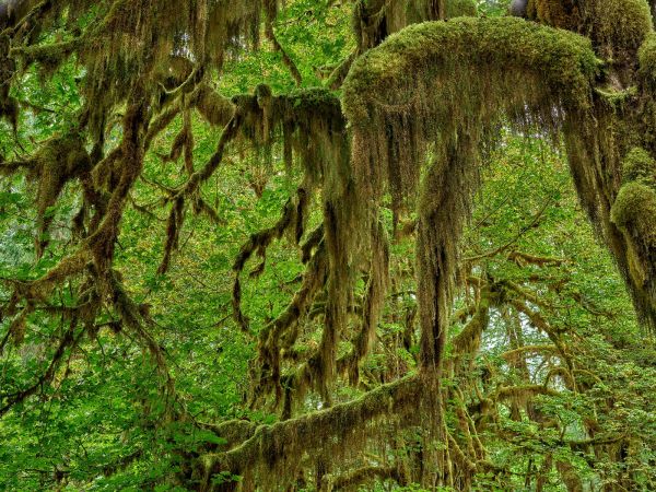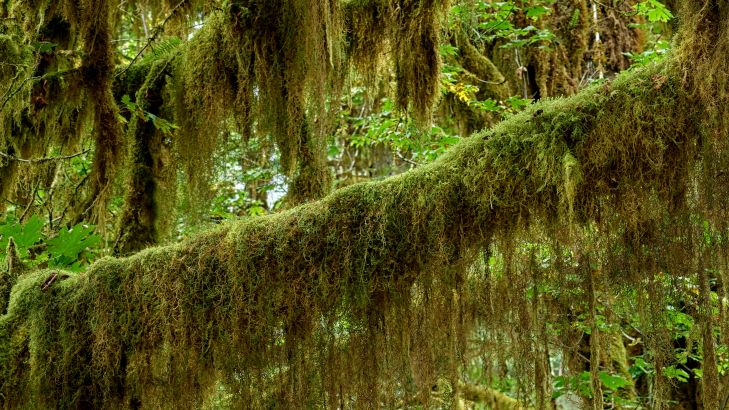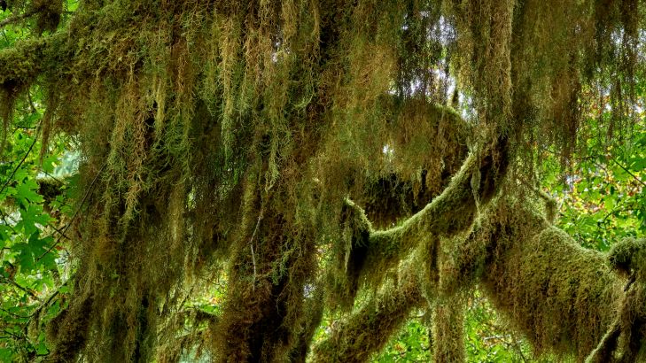 Papier Peint Panoramique Mousse sur branches d'arbres