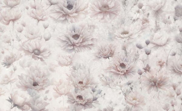 Ce design enchanteur dégage une élégance rêveuse avec ses délicates fleurs flottant en douces teintes pastel sur l'arrière-plan. Les coups de pinceau aquarelle donnent aux fleurs une apparence presque éthérée, les faisant ressembler à une peinture qui a pris vie. Les couleurs varient du crème subtil et du rose poudré aux teintes lavande et grises claires, créant une atmosphère harmonieuse et apaisante. L'apparence romantique de ce design s'intègre parfaitement dans un intérieur classique ou campagnard, où il apporte une touche douce et raffinée à l'espace. Associé à des meubles en bois vintage et à des accents subtils en or ou en laiton, il crée un ensemble intemporel et élégant. Même dans un décor moderne ou minimaliste, ce design peut constituer un magnifique point focal, par exemple en combinaison avec des tissus en lin légers, des accessoires crème et des décorations en verre. Les teintes douces et les formes organiques rendent ce design idéal pour les chambres et les salons, où il apporte une atmosphère sereine et apaisante. Dans un bureau élégant ou une salle à manger romantique, ce motif se révèle également magnifique. L'équilibre subtil entre le détail et la douceur fait qu'il s'adapte aussi bien à un seul mur qu'à un espace plus grand. Avec son motif floral gracieux et ses douces transitions de couleur, ce design ajoute une touche de raffinement et de beauté intemporelle à chaque espace.