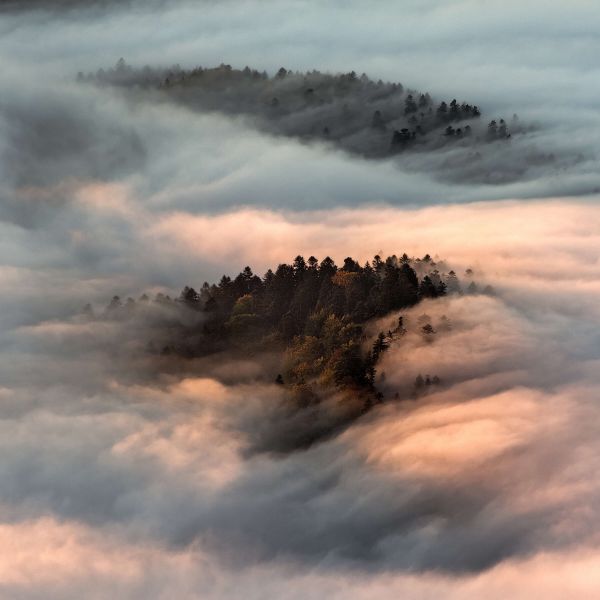 Une rivière mystérieuse. La rivière est caché à travers les nuages, elle reste donc mystérieuse.