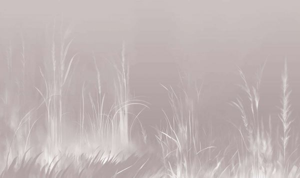 Les teintes de bleu brumeux dans ce design donnent vie au mouvement délicat des herbes ondulantes. Les transitions douces entre le bleu, le gris et le blanc subtil créent une atmosphère équilibrée et calme, renforcée par la technique aquarelle aérienne.