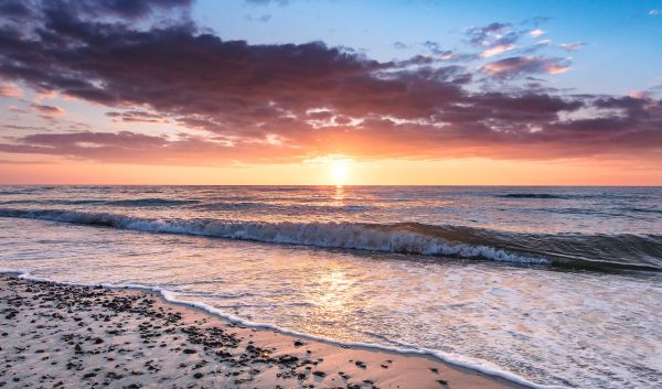 Un océan coloré à la plage au lever du soleil
