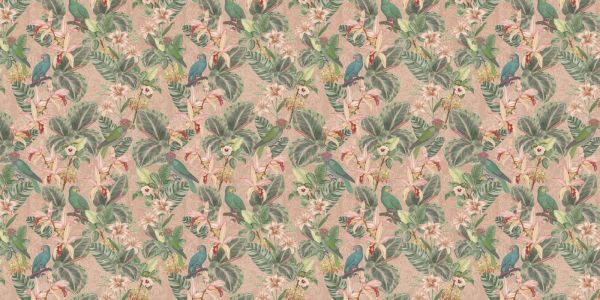 Papier Peint Panoramique Oiseaux et perroquets de la jungle tropicale - terracotta