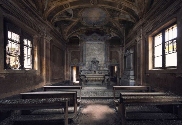 La petite chapelle d'un immense palais du nord de l'Italie. Seules les nombreuses colombes y sont encore présentes.