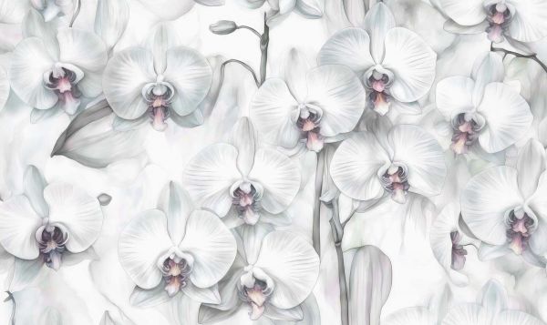 Cette interprétation douce mais fraîche des orchidées se concentre sur la combinaison de blanc pur et de nuances vert clair. Les fleurs dégagent une pureté naturelle, tandis que les accents verts des feuilles et de la tige ajoutent un détail ludique et vivant. L'ensemble a une apparence légèrement aquarelle, donnant l'impression que chaque fleur flotte presque dans l'espace. Ce design est idéal pour ceux qui souhaitent apporter calme et une touche de nature dans leur maison. Dans un intérieur minimaliste avec beaucoup de blanc et de verre, l'imprimé floral a l'occasion de briller subtilement, tandis que dans un cadre rural avec des meubles en bois et des tissus en lin, il apporte un charme décontracté et campagnard. Grâce aux fines gradations de vert, ce motif s'intègre sans effort dans divers styles de vie, du moderne au classique. Il adoucit les lignes épurées et ajoute une touche rafraîchissante dans les espaces chaleureux. Avec des accessoires verts ou des plantes, vous pouvez renforcer l'équilibre dans l'intérieur, mais même avec des teintes neutres, le design se révèle magnifique.
