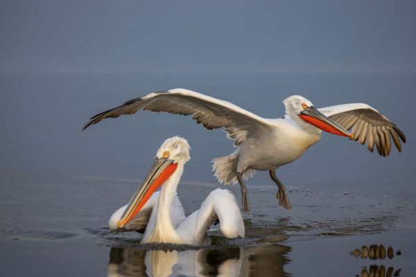 Pélican dalmatien au lac Kerkini en Grèce pendant la saison hivernale.