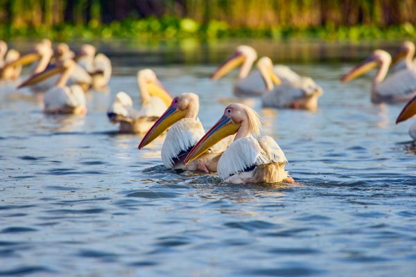 Photo de pélicans dans la nature en Roumanie. Combinez ce papier peint dans votre maison.