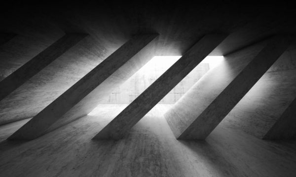 3D wandkleed met grote betonnen pilaren die diagonaal zijn geplaatst