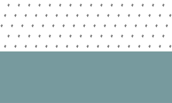 Fond gris-bleu qui passe à mi-chemin de l'impression à un fond blanc avec de petits cactus noirs.