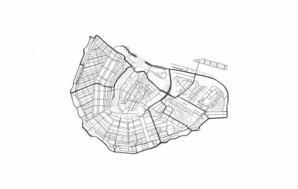 Plan du centre-ville d'Amsterdam, blanc en différents matériaux