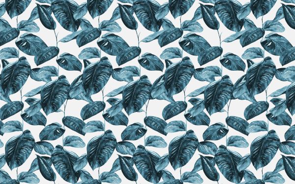Un motif de plantes aquarellées de couleur bleu canard . Créez plus d'atmosphère dans le salon avec ce papier peint.