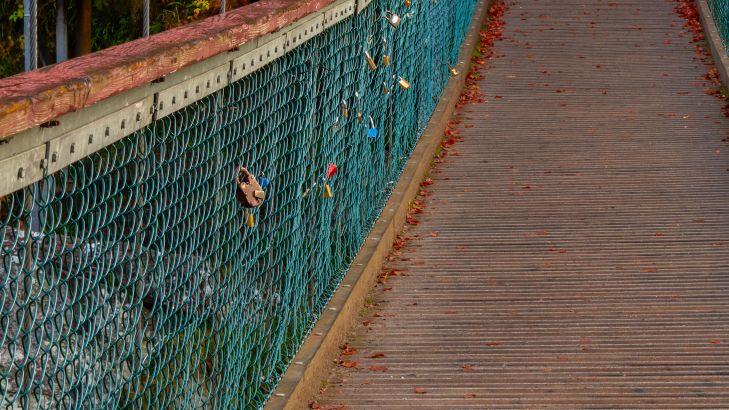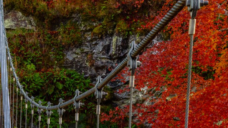 Passerelle dans un décor automnal coloré