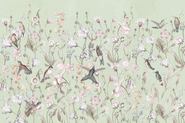 Un design vivant avec des fleurs délicates et des colibris gracieux, harmonieusement tissés dans une composition aérienne. Ce motif respire un charme naturel raffiné et apporte une atmosphère fraîche et printanière dans chaque espace.