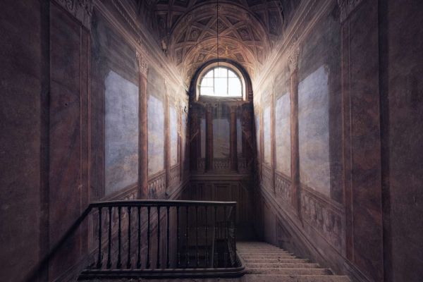 La pièce maîtresse de cet immense palazzo est cet imposant escalier orné de magnifiques peintures murales qui donnent l'impression que la pièce est plus grande qu'elle ne l'est en réalité.