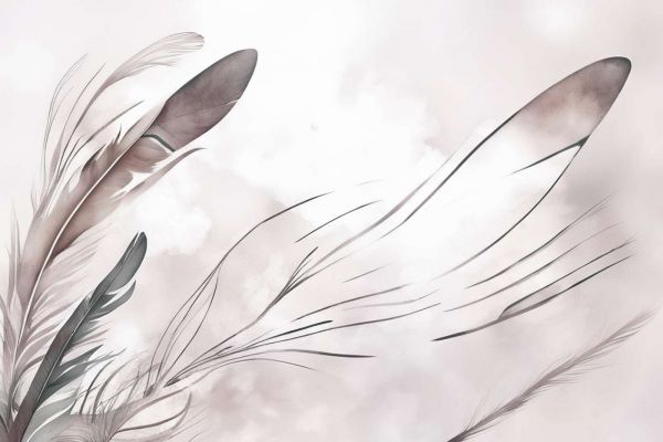 Un design serein de plumes fluides, teintées de brun, contre un fond nuageux et chaud. Le mouvement subtil et les transitions douces créent une sensation de légèreté et de calme.