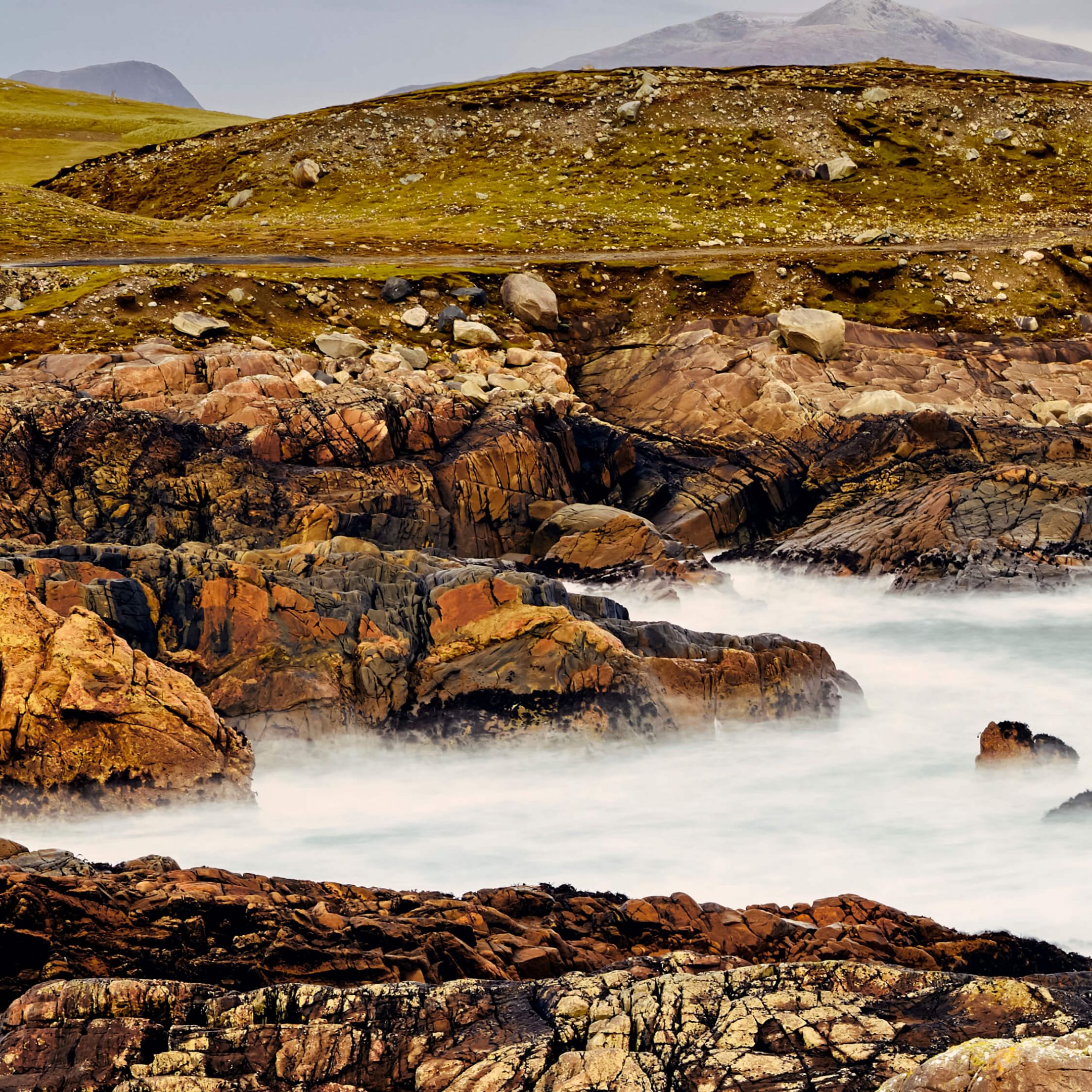 Rivage avec des rochers en différents matériaux
