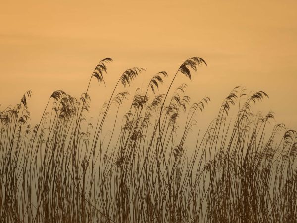 Roseaux au bord de l'eau au coucher du soleil. Combinez ce papier peint dans le salon, par exemple.