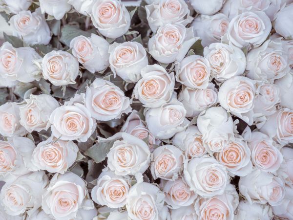 Des roses claires photographiées d'en haut. Vous aimez les roses ? Alors ce papier peint est fait pour vous.