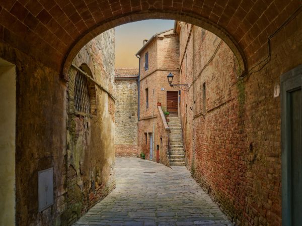 Rue étroite et courbe en Italie. Avec ce papier peint dans votre maison, c'est comme si vous pouviez vous promener dans la rue.