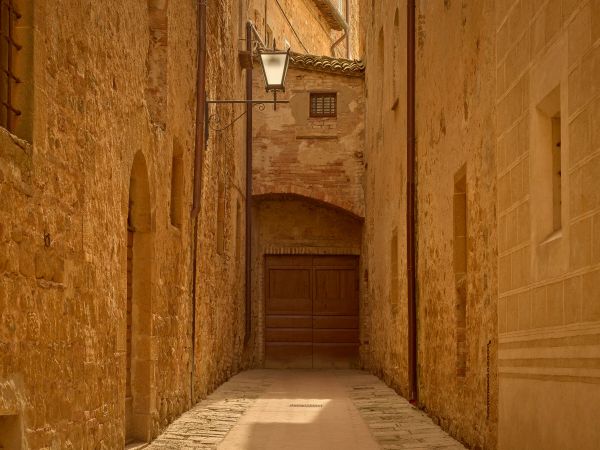 Rue italienne avec lanterne un jour d'été. Obtenez un morceau d'Italie dans votre maison avec ce papier peint.