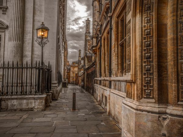 Une ruelle étroite à Cambridge. Avec ce papier peint dans votre maison, c'est comme si vous pouviez vous promener vous-même dans cette ruelle.