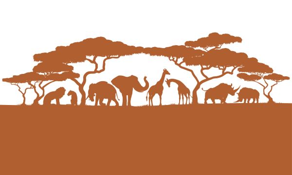 Papier Peint Panoramique Silhouettes d'animaux de safari, couleur rouille