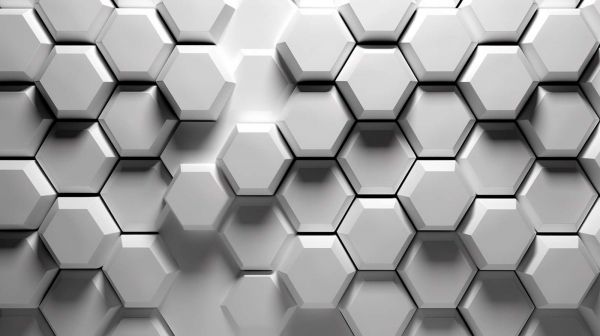 Ce motif immersif d'hexagones tridimensionnels dans différentes teintes d'argent crée une texture visuellement envoûtante.