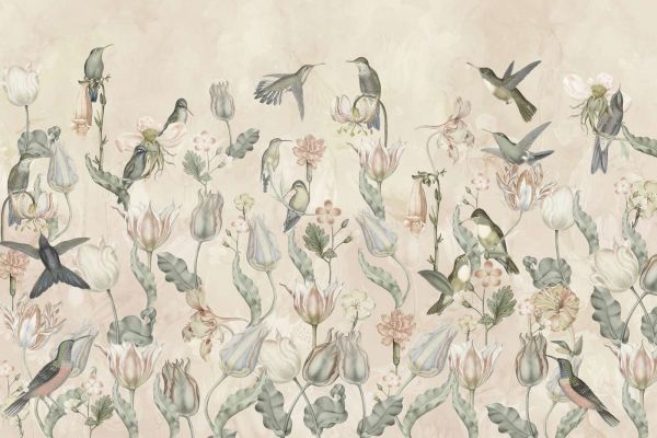 Papier Peint Panoramique Symphonie du Colibri de Printemps - Murmure du Désert