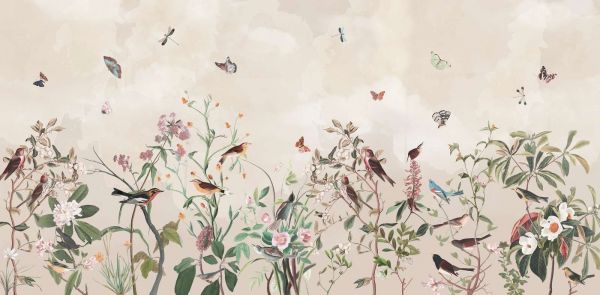Des dessins détaillés avec un mélange raffiné d'oiseaux, de papillons et de fleurs, sur des fonds aux couleurs douces. Parfait pour créer une atmosphère calme et naturelle dans n'importe quel intérieur.