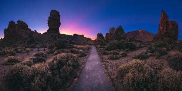 Un sentier pédestre à travers une réserve naturelle de Tenerife. Le soleil vient de se coucher.