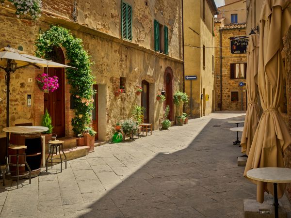 Une vieille rue italienne avec des lieux en terrasse. Parce que vous pouvez regarder dans la rue, c'est comme si vous pouviez marcher dans la rue depuis votre chambre.