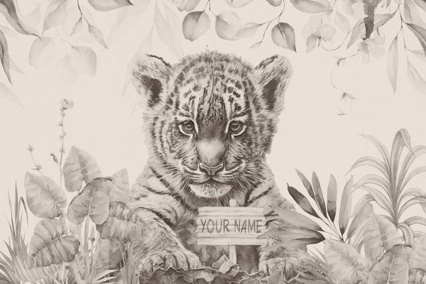 Papier Peint Panoramique Tigre mignon avec des plantes beige
