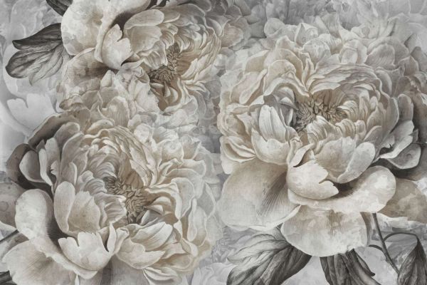 Ce design combine la beauté intemporelle des pivoines avec une interprétation artistique des formes naturelles. Les fleurs, dans des tons doux tels que les tons crème, blush et gris, sont complétées par des feuilles détaillées qui créent une impression de profondeur et de dimension. L'arrière-plan constitue une base raffinée et tranquille, permettant aux fleurs luxuriantes d'occuper une place centrale dans le design.