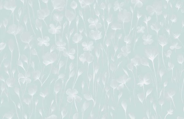 Un motif floral léger et raffiné dans des teintes douces de vert menthe. Les délicates fleurs et les tiges élégantes semblent presque flotter dans un arrière-plan brumeux et clair, créant une ambiance fraîche et sereine. Parfait pour une atmosphère apaisante et stylée.