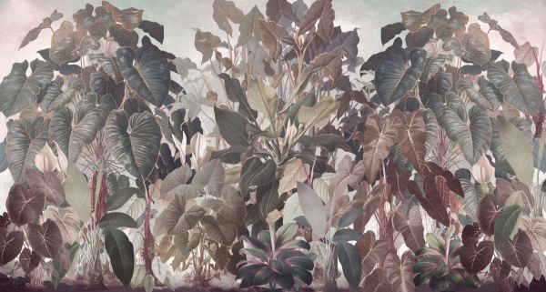 Des motifs tropicaux luxuriants avec des feuilles détaillées et une riche palette de couleurs. Ces motifs apportent la paix et l’abondance de la nature à l’intérieur, parfaits pour un espace unique et atmosphérique.