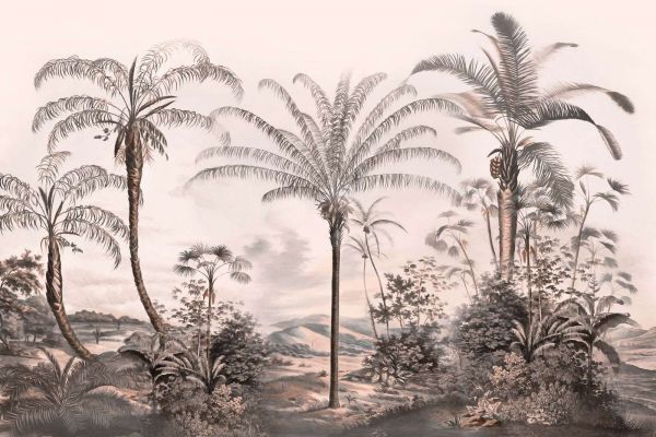 Avec ses audacieuses nuances de noir et de gris, ce design crée un panorama tropical saisissant qui se sent à la fois moderne et intemporel. Les palmiers semblent se dresser en silhouette contre un horizon subtile et crépusculaire, ce qui donne une allure intrigante et artistique. Ce motif est parfait pour les intérieurs qui aiment les contrastes et une touche de drame. Dans un cadre chic et minimaliste avec des murs blancs épurés et des accents métalliques, ce design a l'occasion de vraiment briller. Dans un environnement industriel ou de type loft, vous pouvez l'associer à du béton, du cuir ou des bois sombres pour une ambiance robuste et audacieuse. Les couleurs sombres apportent une ambiance luxueuse et mystérieuse, rendant ce design particulièrement adapté par exemple pour un salon élégant ou une chambre principale. En l'achevant avec un éclairage chaleureux, des coussins en velours et quelques plantes vertes, vous créez un ensemble raffiné et pourtant accueillant. Ainsi, vous faites entrer la nuit tropicale, avec tout le charme qui l'accompagne.