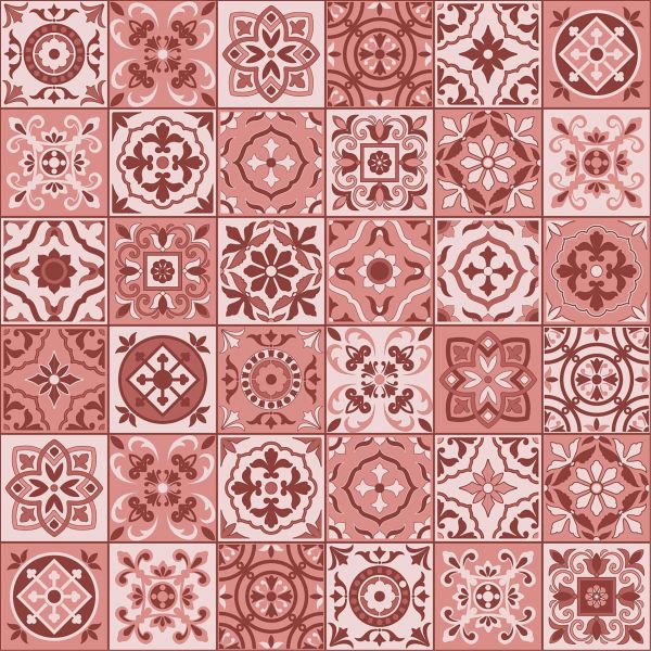 Papier peint d'un beau motif de carreaux marocains blancs, de couleur marsala, avec des impressions multiples.