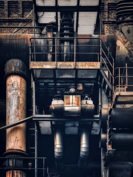 Système de tubes dans une ancienne usine.