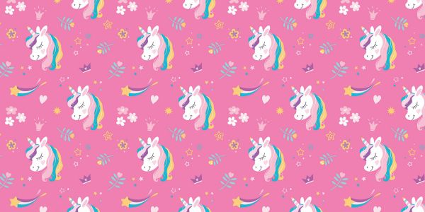 Une licorne sympathique avec une crinière rose, violette, bleue et jaune. La licorne est entourée de fleurs.