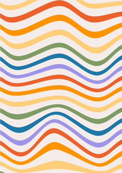 Papier peint d'un imprimé des années 60 avec des couleurs arc-en-ciel. Combinez-le dans la chambre à coucher.