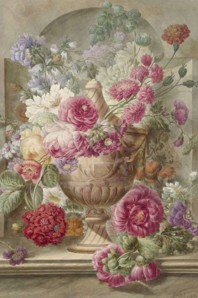 Un vase avec des fleurs réalisé par Pieter van Loo, 1745-1784.