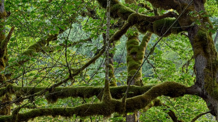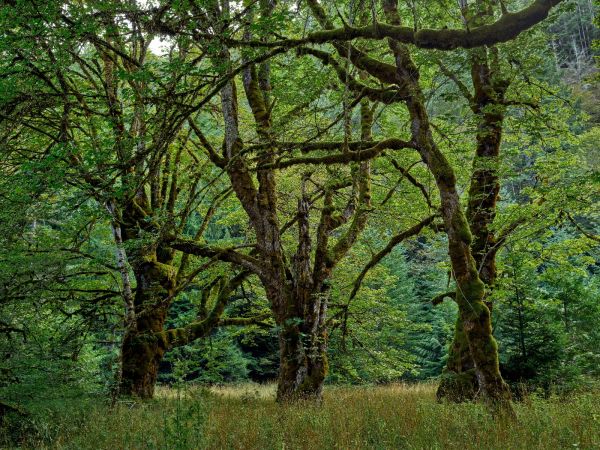 Photo détaillée de 3 vieux arbres mystérieux dans une forêt