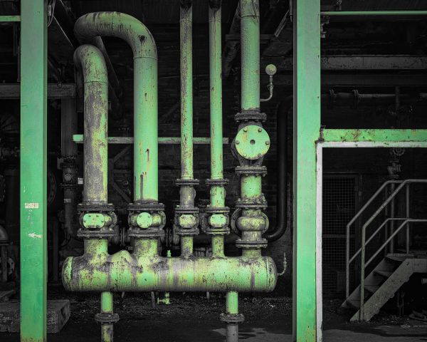 Une ancienne structure tubulaire dans une zone industrielle abandonnée.