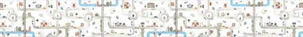 Une ville joyeuse pleine de routes, de maisons, de voitures, de trains et de petits détails tels que des animaux, des ponts et des moulins. Idéal pour un jeu d'imagination et la découverte, avec des couleurs douces et une allure ludique.