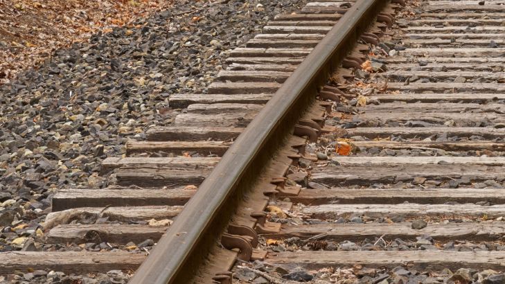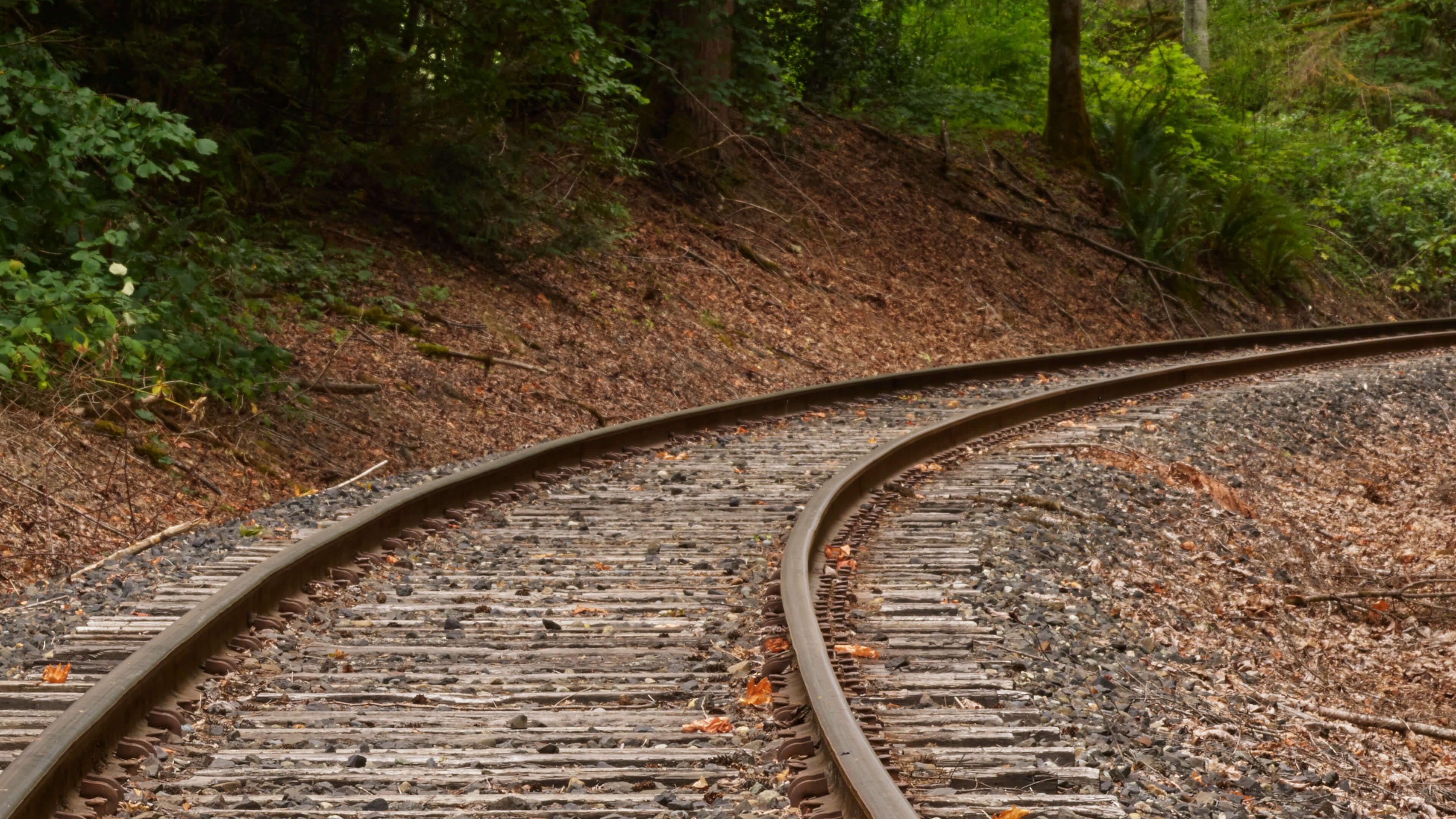 Belle photo portrait d'une ancienne voie ferrée à travers la forêt